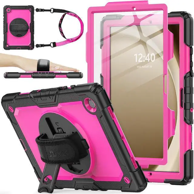360° Hand Strap Shockproof Case for Galaxy Tab A9 8.7 inch, Pink+Black