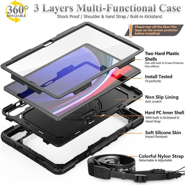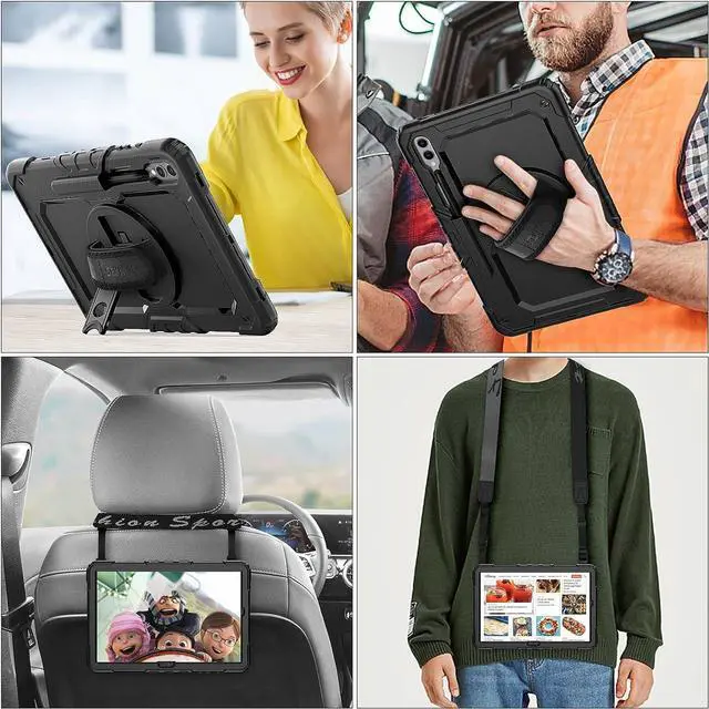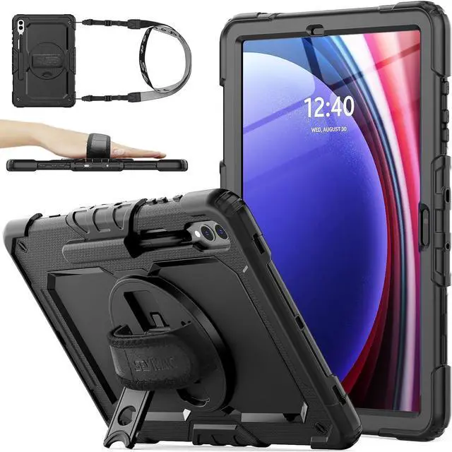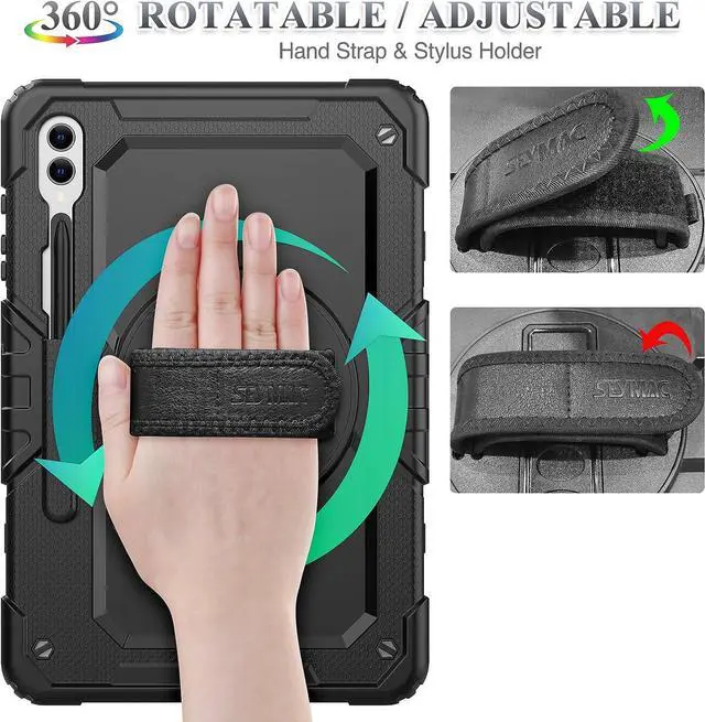 Soft Hand Strap & Portable Shoulder Strap & Rotating Stand: Provide the protection and convenience when you play or work with Galaxy Tab S9 Plus 5G, Hang it anywhere for your entertainment, makes your hands free. 360 Degrees rotating Kickstand provides multi-angle viewing, with soft hand strap, easy to use your S9+ Tablet while outdoor travelling, working,gaming with kids.