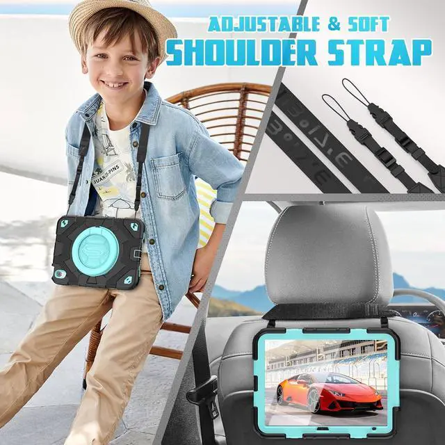 Multi-Functional- The Pad case with Pencil Holder, Portable Shoulder Strap and Built-in Screen Protector, comes with pencil Holder. Moreover, the shoulder strap can be circled on car front seat for kids having fun at the back. Enjoy a quiet and relax drive, starting from the 10th gen Pad case.
