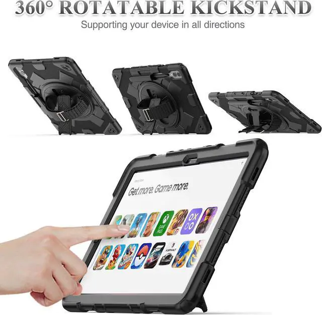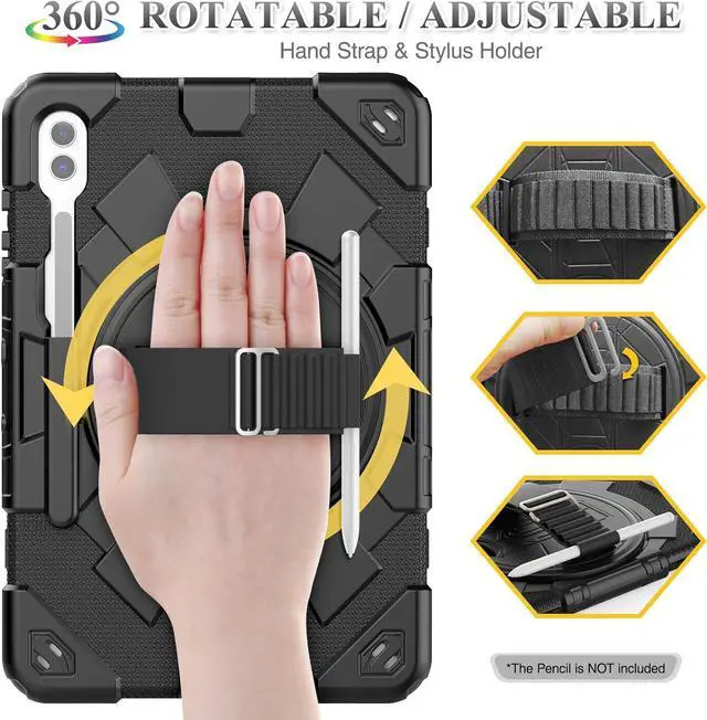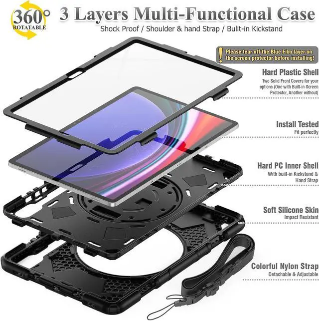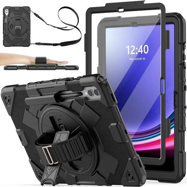 Soft Hand Strap & Portable Shoulder Strap & Rotating Stand: Provide the securest protection and more convenience when you play or work with tablet. Hang it anywhere for your better entertainment, make your hands free. 360 Degree rotating Kickstand provides multi-angle viewing, with soft handle strap, easier to use your Galaxy Tab S9 Plus in your outdoor travelling, working, gaming with kids.