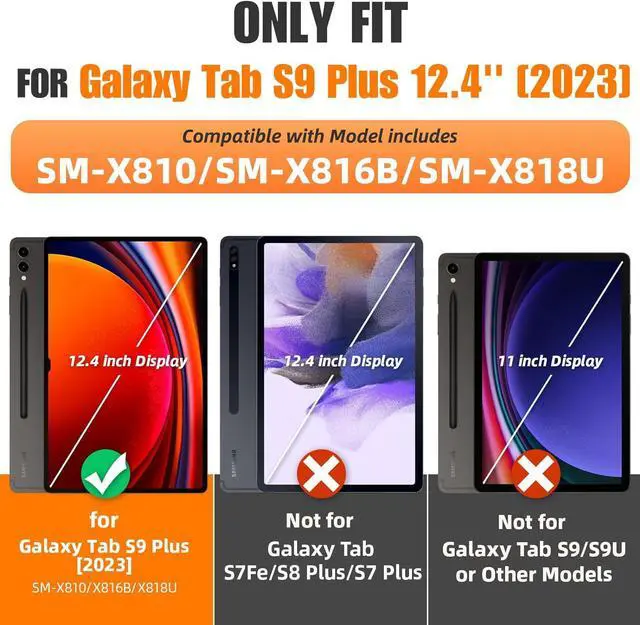• Full-body Meshdesign shockproof case ONLY for Galaxy Tab S9 Plus 12.4 inch, Model (SM-X810/X816B/X818U) 2023 Release. NOT for S9 or S9 Ultra! (Please visit to choose the correct model for your tablet.)