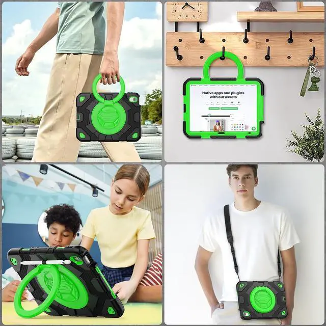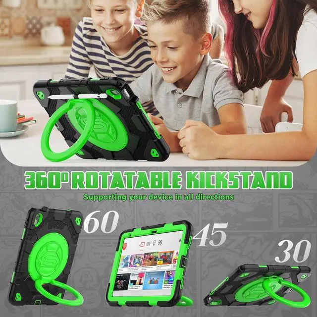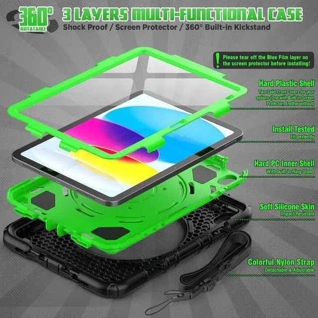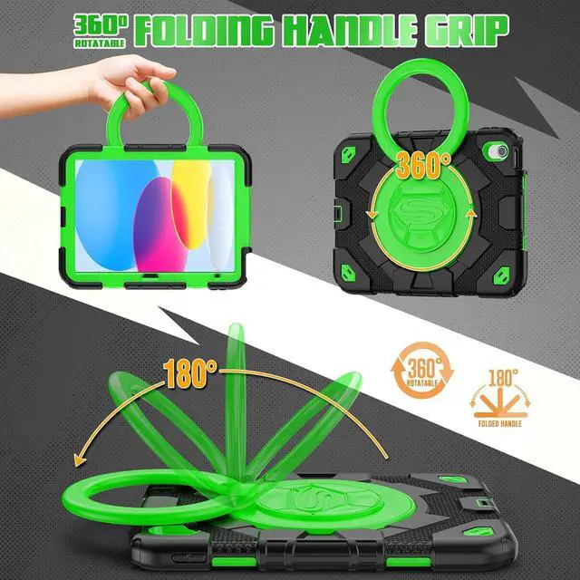 Pad 10th Generation Case 10.9'' with Screen Protector, 360° Rotating Handle Stand, Shoulder Strap & Pencil Holder, Heavy Duty Shockproof Case for Pad 10th Generation 2022(Black+Green)