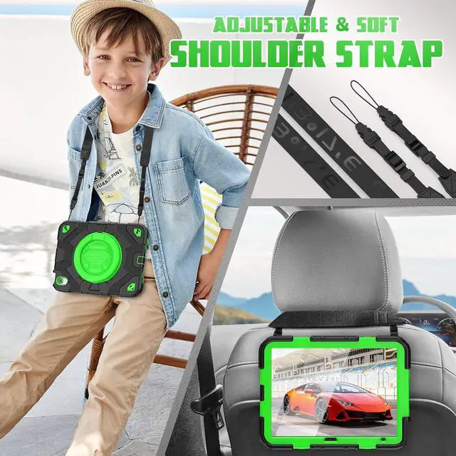 Multi-Functional- The Pad case with Pencil Holder, Portable Shoulder Strap and Built-in Screen Protector, comes with pencil Holder. Moreover, the shoulder strap can be circled on car front seat for kids having fun at the back. Enjoy a quiet and relax drive, starting from the 10th gen Pad case.