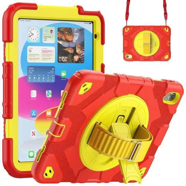 Rugged Rotating Kickstand- With built-in Kickstand allows landscape mode / portrait mode / typing mode achieved with its full angles Rotating Stand. You may also self customize the Pad 10th case to all angles, and hook anywhere.