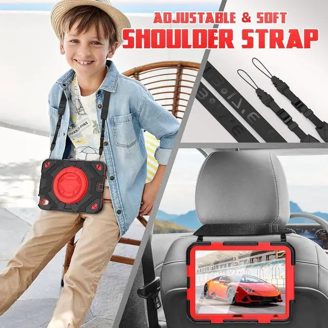 Multi-Functional- The Pad case with Pencil Holder, Portable Shoulder Strap and Built-in Screen Protector, comes with pencil Holder. Moreover, the shoulder strap can be circled on car front seat for kids having fun at the back. Enjoy a quiet and relax drive, starting from the 10th gen Pad case.
