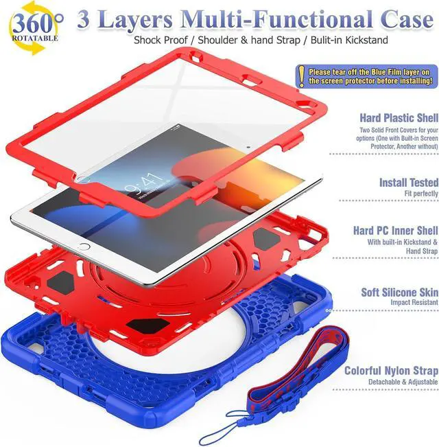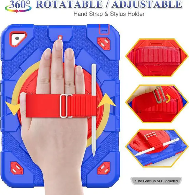 Soft Strap & Portable Shoulder Strap & Rotating Stand: Provide the protection and convenience when you play or work with Pad. Hang it anywhere for your entertainment, makes you using Pad 9th/8th/7th Generation case easily. 360 Degrees rotating Kickstand provides convenient viewing, with soft strap, easy to use your Pad in your outdoor travelling, working, gaming with kids.