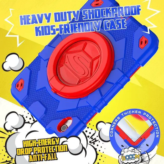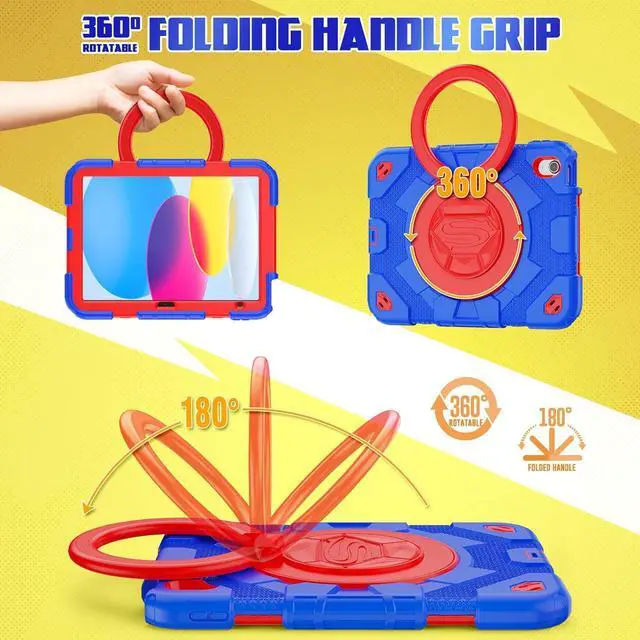 Rugged Rotating Kickstand- With built-in Kickstand allows landscape mode / portrait mode / typing mode achieved with its full angles Rotating Stand. You may also self customize the Pad 10th case to all angles, and hook anywhere.