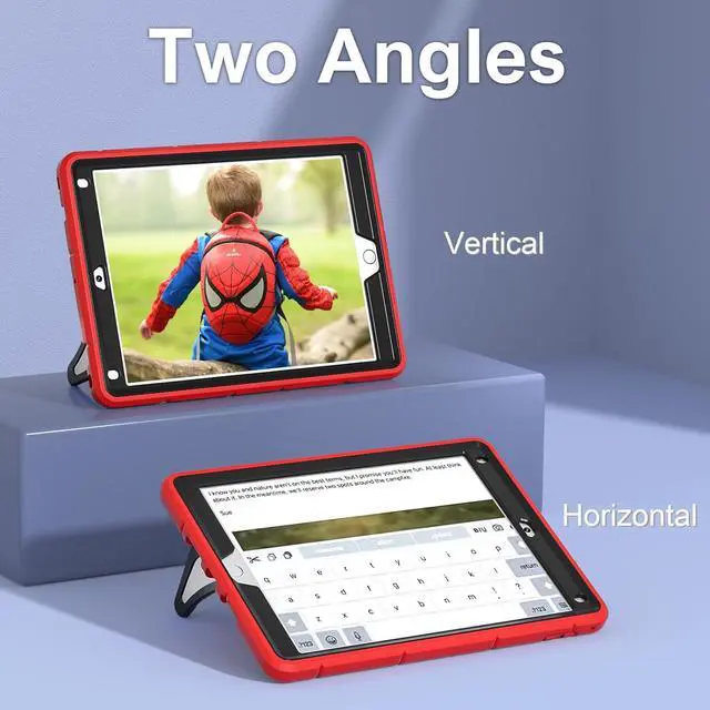 Functional Sturdy Kickstands Kids case for Pad 6th/5th generation built-in double strurdy kickstands, extremely sturdy when using (watching and typing) . Double kickstands design is more sturdy and durable than one kickstand