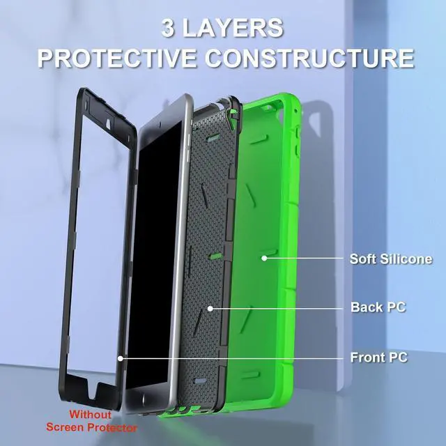 Shockproof Rugged Design Pad pro 9.7 case is made of durable Hard PC+ Up-graded Silicone, 3-layer full body protection structure, provide great protection, protects your Pad 5th generation case & Pad Air 2 case from scratches and accidental drops,bumps,and impacts