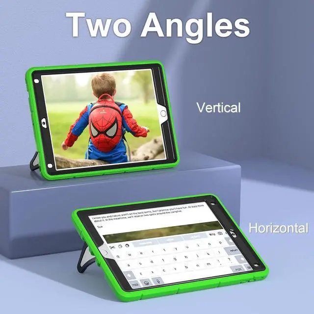 Functional Sturdy Kickstands Kids case for Pad 6th/5th generation built-in double strurdy kickstands, extremely sturdy when using (watching and typing) . Double kickstands design is more sturdy and durable than one kickstand