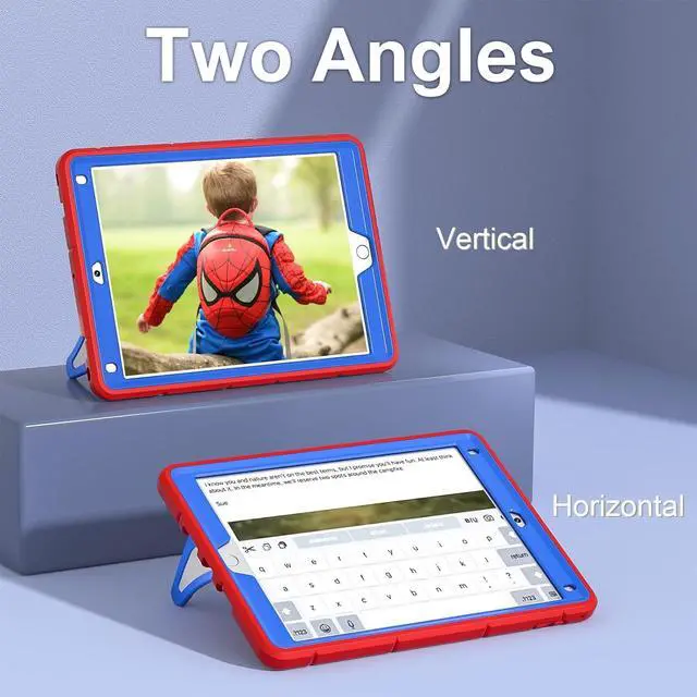 Functional Sturdy Kickstands Kids case for Pad 6th/5th generation built-in double strurdy kickstands, extremely sturdy when using (watching and typing) . Double kickstands design is more sturdy and durable than one kickstand