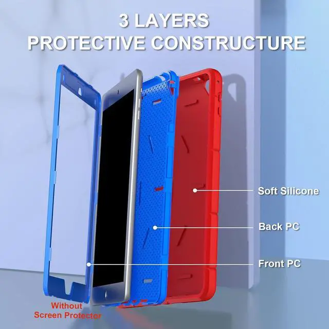 Pad 6th Generation Cases Pad 5th Generation Case Pad Pro 9.7 Case,Hybrid Shockproof Rugged Case Cover with Kickstand for Pad Air 2 Case, Red Blue