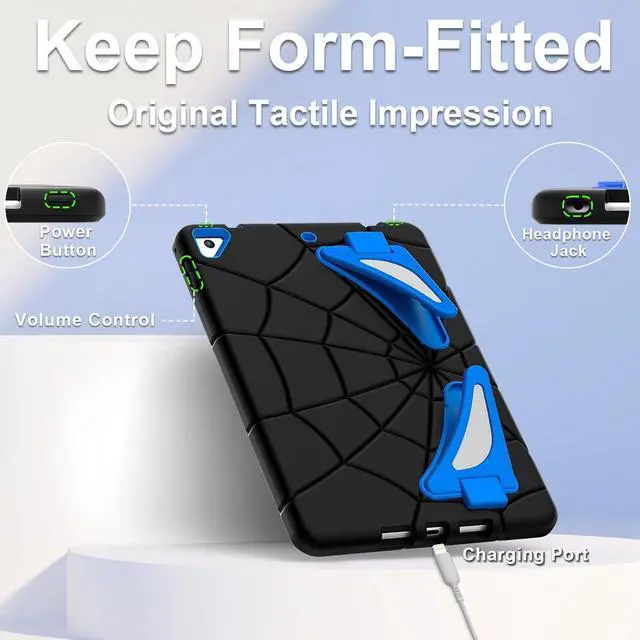 Exclusive Design The appearance design makes you associate with the hero of animation. Fans can imagine heroic battling villains for the fate of the world with this Pad 6th generation cases pattern. Spider Web design makes it more anti-slip and easy to hold