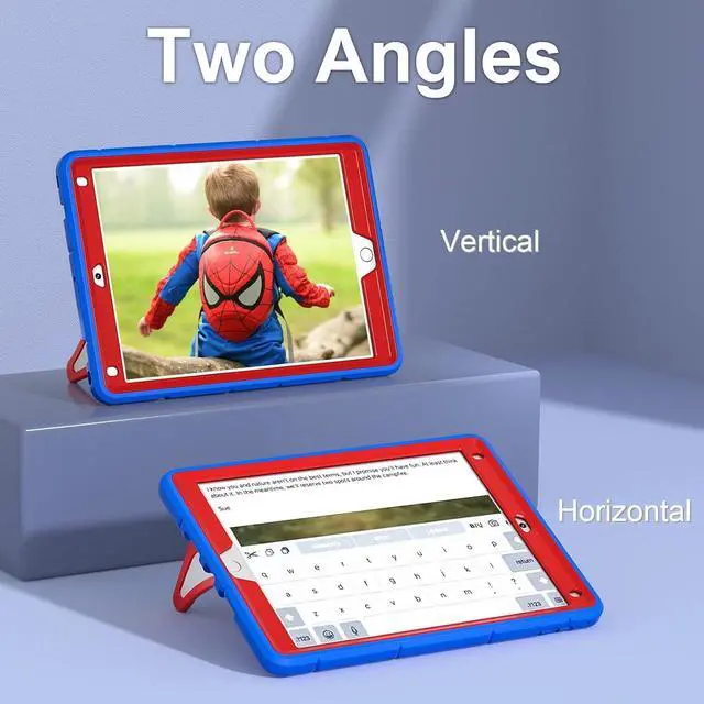 Functional Sturdy Kickstands Kids case for Pad 6th/5th generation built-in double strurdy kickstands, extremely sturdy when using (watching and typing) . Double kickstands design is more sturdy and durable than one kickstand