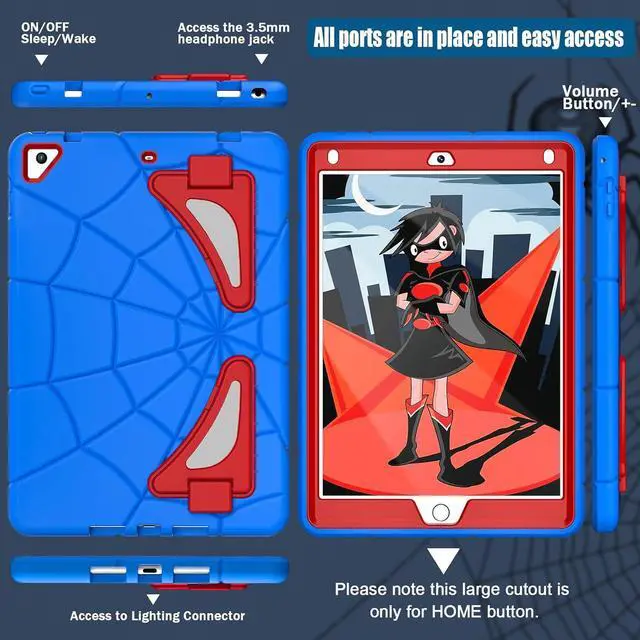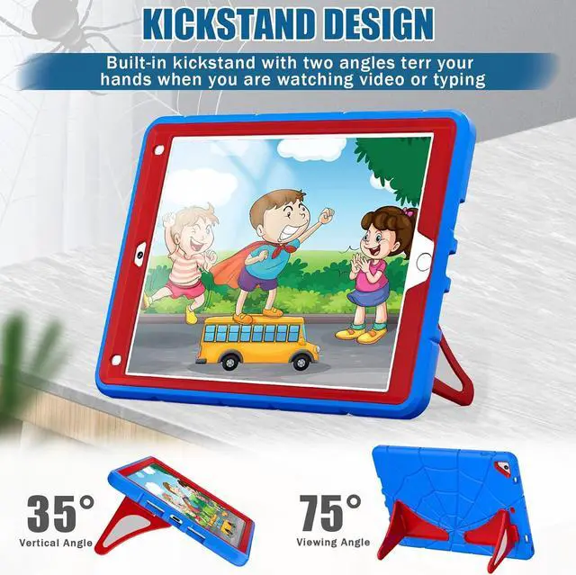 Pad 9.7 2018 2017 / Pad Air 2 Case, Heavy Duty Shockproof Rugged Hybrid Sturdy with Kickstand for Kids Children Boys for Pad 6th/5th Gen/Pad Air 2 (Blue+Red)