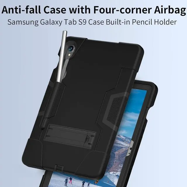 Compatibility with Galaxy Tab S9 11''/S9 FE 10.9'': This Hybrid Shockproof Rugged Drop Protection Cover with Kickstand & Pencil Holder is for Galaxy Tab S9 11 inch 2023 Released (SM- X710/ X716B/ X718U)/Galaxy Tab S9 FE 10.9 inch (Model SM-X510/X516B/X518U).
