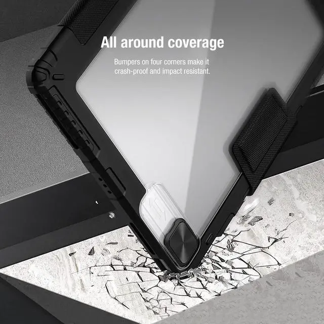 Stylish Shoulder Strap & Pencil HolderAdjustable /detachable shoulder strap and pencil holder provides a new assisting function. The strap lets you carry your device hands-free, whether you're commuting to work or running errands, while the pencil holder keeps your Apple Pencil within reach.