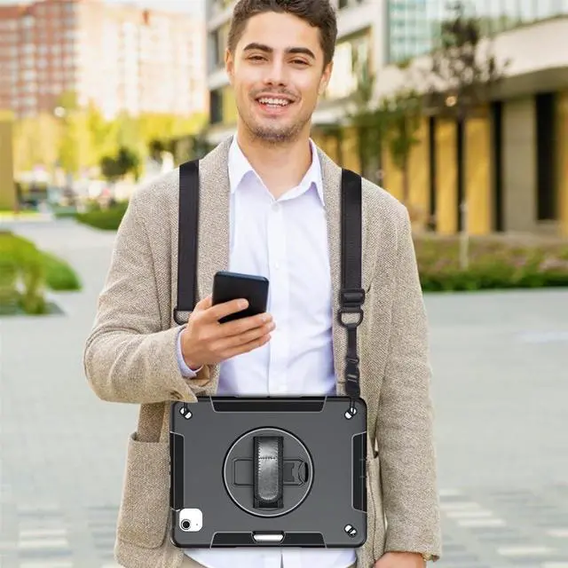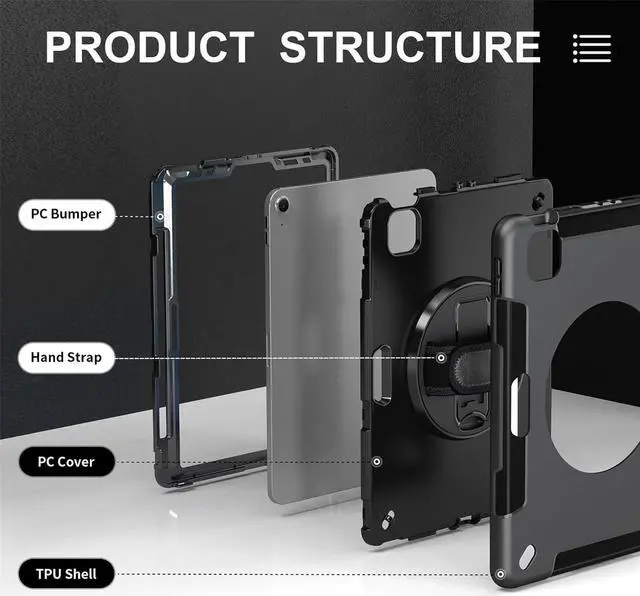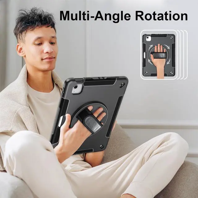 [360° Rotatable Kickstand & Hand Strap]: 360° rotating structure supports multi-angle viewing. Soft rotating handle strap gives you a better grip on your iPad for travelling,working or gaming. Ideal for kids stay-at-home online education.