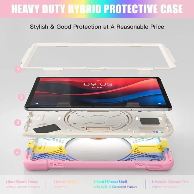 Full Body Protection3-Layered protection includes the front frame and hard PC back cover, and soft silicone outer shell. If your iPad is dropped or scratched, this sturdy protective case can provide full protection.
