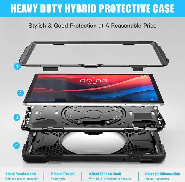 Case for Tab M11 2024 (TB-330FU/330XU) 11", Durable Shockproof Protective Cover with 360° Rotating Stand - Hand Strap - Shoulder Strap,Black