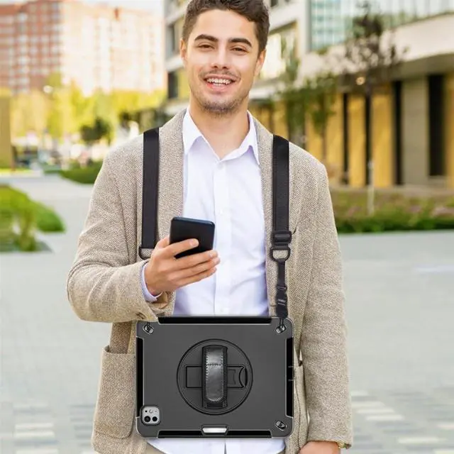 ADJUSTABLE HAND STRAP + DETACHABLE SHOULDER STRAP: The adjustable hand strap offers easily grip and comfortable hold, it is a must feature when you show your iPad to others. The detachable and adjustable shoulder strap can help you carry your iPad more securely during hiking, traveling other outdoor activities.