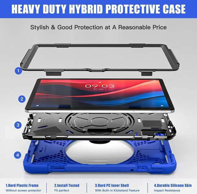 Case for Tab M11 2024 (TB-330FU/330XU) 11", Durable Shockproof Protective Cover with 360° Rotating Stand - Hand Strap - Shoulder Strap,Blue
