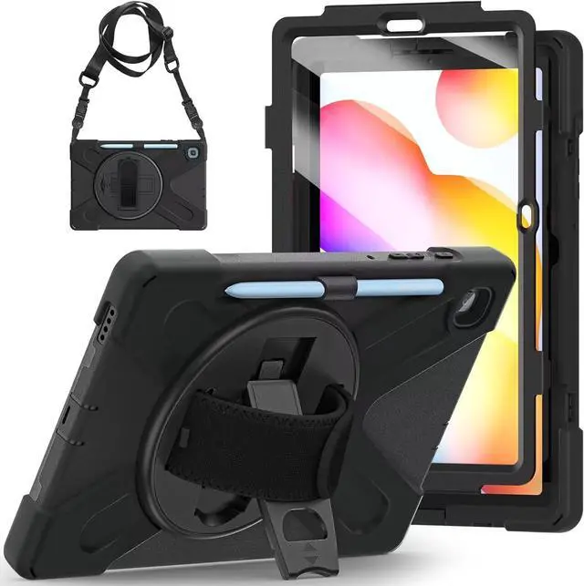 for Galaxy Tab S6 Lite Case 10.4 Inch 2024/2022/2020 with Screen Protector/Rotating Stand&Hand Strap/S Pen Holder | Shockproof Case for Galaxy Tab S6 Lite (SM-P620/P610/P613/P615)-Black