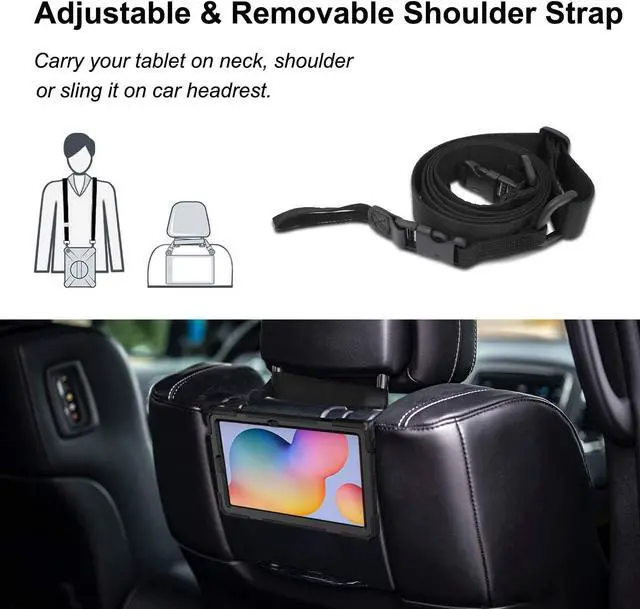 Adjustable Shoulder & Hand StrapThe TSQ armor heavy duty non-slip Galaxy P610/P615 2020 Case comes with a detachable shoulder strap, carry your 10.4 inch tablet over shoulder like a bag or hang it from your car headrest.The hand grip is adjustable which allows you to hold the tablet firmly with one hand.