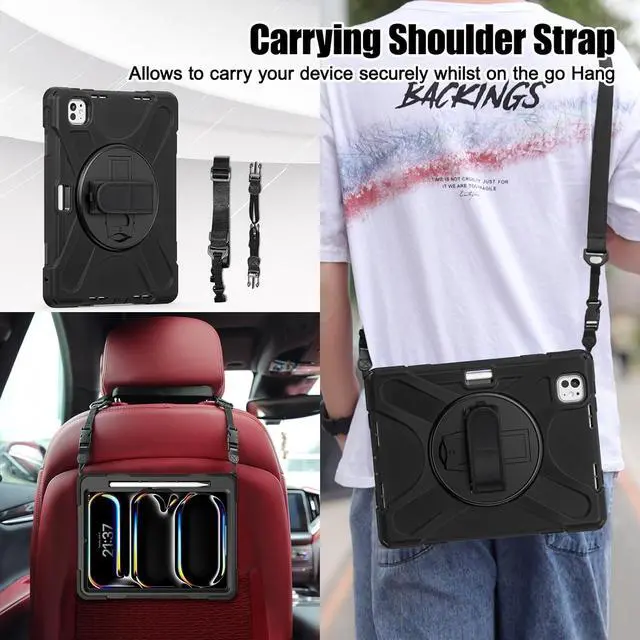 Adjustable Shoulder Strap: Adjustable/Detachable carrying strap for a wide-range of users, carry your device by side and hands-free at all times, case for iPad Pro 11 inch 2024 model perfect for business/travel