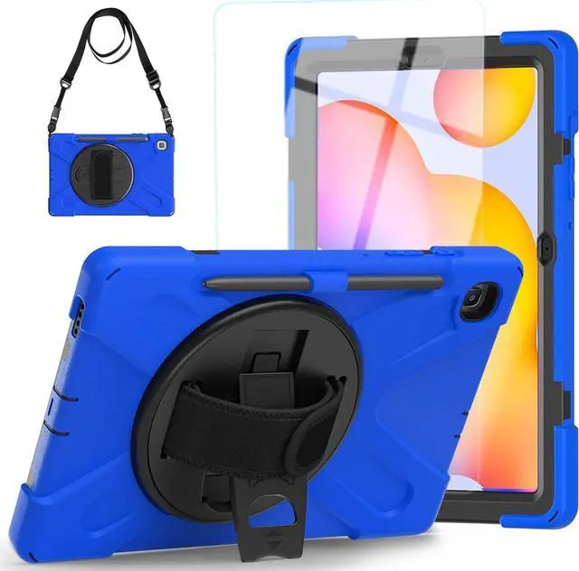 Galaxy Tab S6 Lite 10.4 Case with Screen Protector S Pen Holder for Kids 2024 | Shockproof Protective Cover w/Stand Hand Shoulder Strap Case for S6 Lite Tablet 2022 2020 -Blue