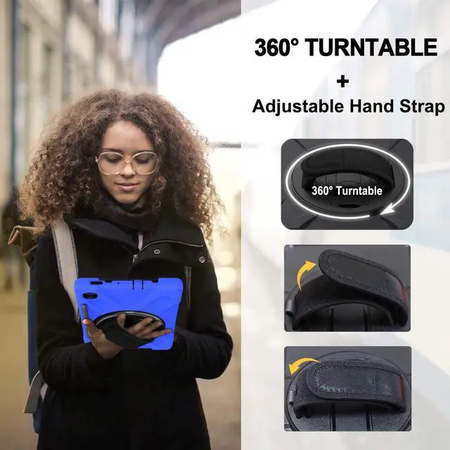 360 Turntable & Kicktand DesignThe hard rugged case with 360 degrees swivel turntable supports your tablet from multiple angles.On the back side of the high impact resistant Tab S6 Lite 10.4 inch case,there is a sturdy foldable bulit-in kickstand.Convenient for attending conference, watching videos and typing.