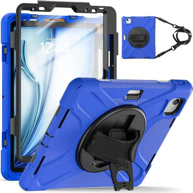 for iPad Air 6th Generation 11 Inch Case M2 2024, iPad Air 5th/4th Gen Case 10.9 Inch with 360° Rotating Stand Hand/Shoulder Strap, Shockproof Protective Case for iPad Pro 11" 2022, Blue