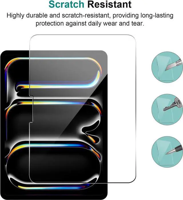 Scratch and Shock Resistant: 9H hardness ipad pro 13 inch 2024 M4 tempered glass screen protection is specially toughened to strengthen the surface of the screen protector to withstand external scratches and shocks more effectively and to reduce screen damage