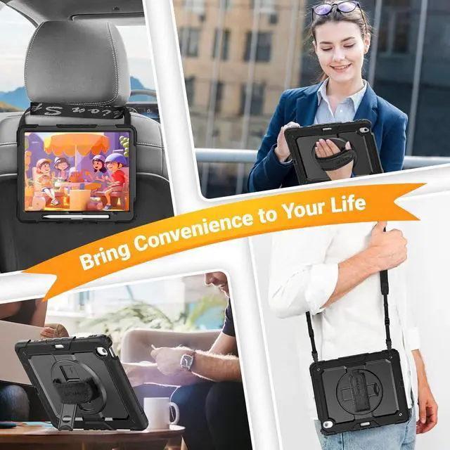 Adjustable Shoulder Strap : Adjustable shoulder grip can be slanted and release your hands completely. This function is perfect for traveling, restaurant ordering, home product introduction, engineer outdoor operation, teacher, etc. Also, the strap allows you to hang up your tablet behind car seat for entertainment for kids.