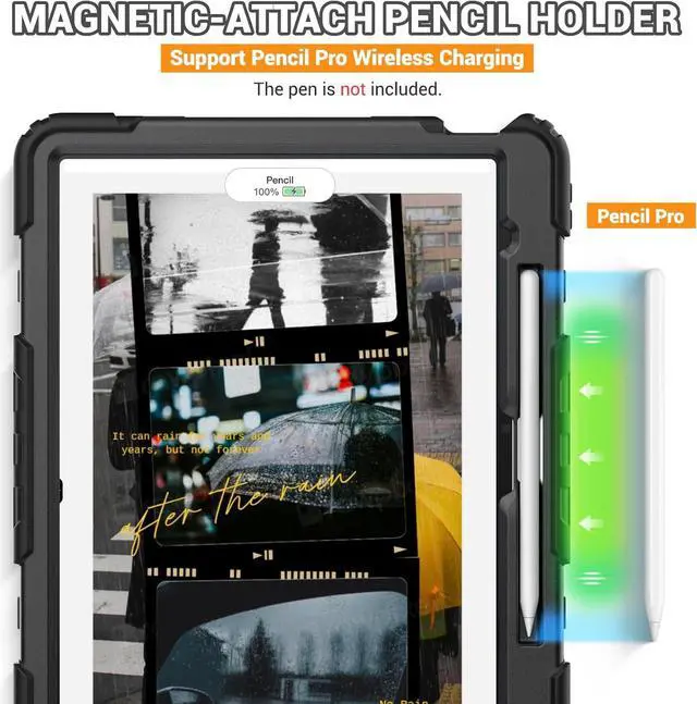 Detachable Screen Protector and Pencil Holder : Built-in anti-skidding screen protector to protect your iPad Air 13 M2 tablet 2024 from fingerprints and scratches. Pencil holder can hold your pencil in place tightly to avoid falling out while walking. (S Pen is NOT included)