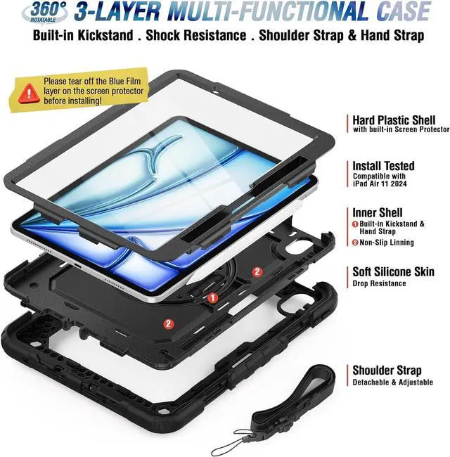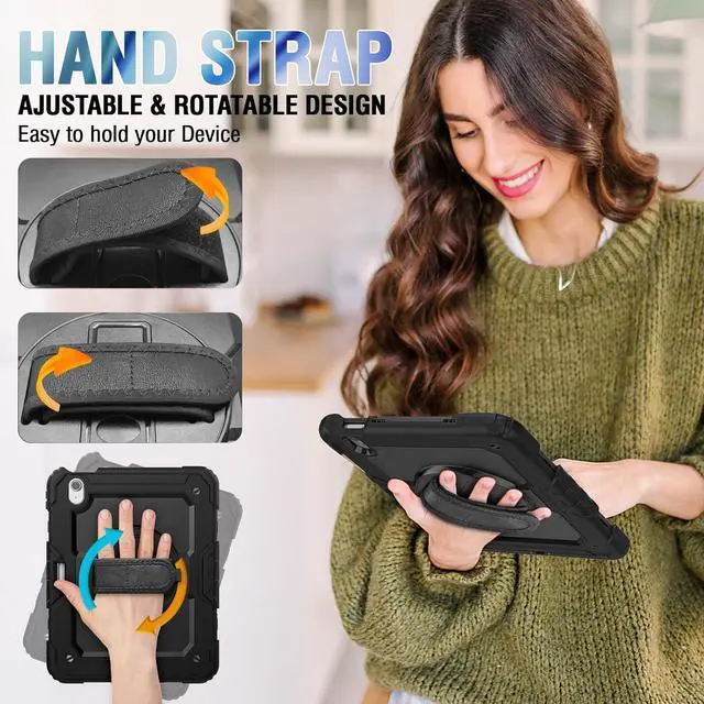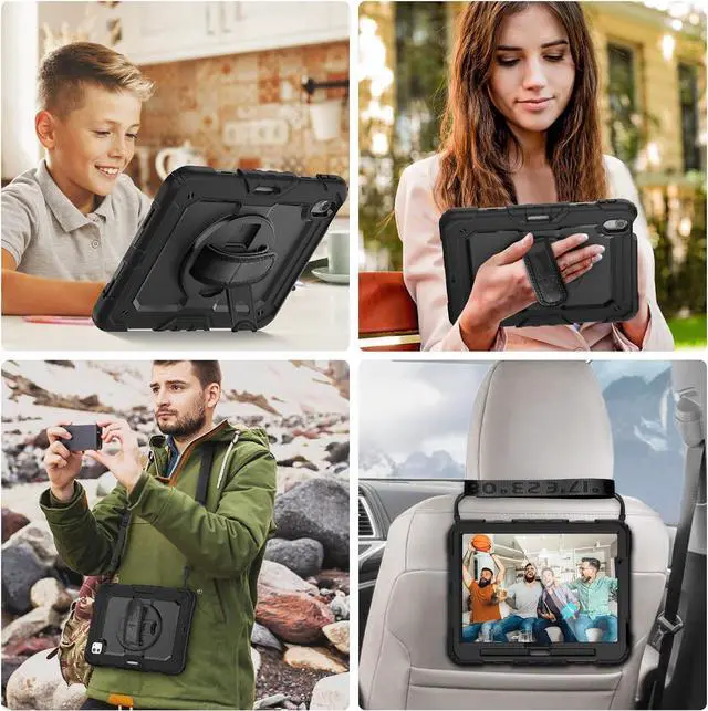 Adjustable Shoulder Strap : Adjustable shoulder grip can be slanted and release your hands completely. This function is perfect for traveling, restaurant ordering, home product introduction, engineer outdoor operation, teacher, etc. Also, the strap allows you to hang up your tablet behind car seat for entertainment for kids.