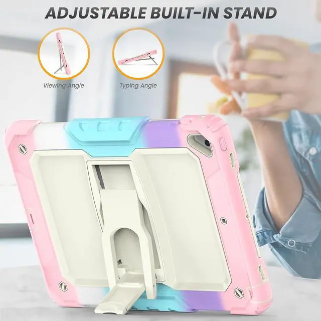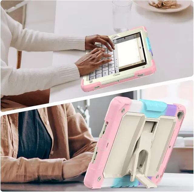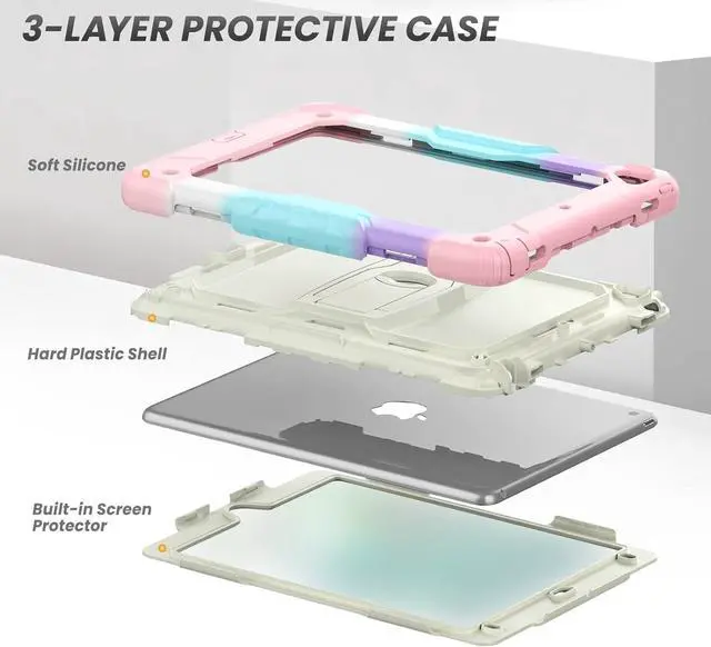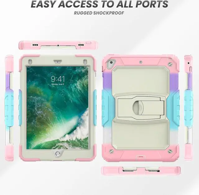 Shockproof DesignThis 3-layers all in one iPad 9.7 case provides full body protection, with durable anti shock material, soft silicone, hard plastic shell and built-in stand. This sturdy case can keep your iPad safe from shock, drop, scratch or accidental damages in daily use, also ideal for kids.