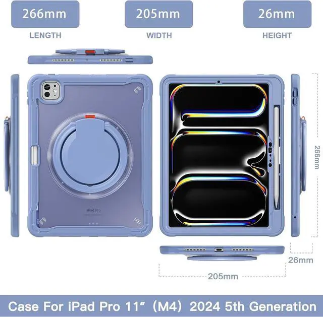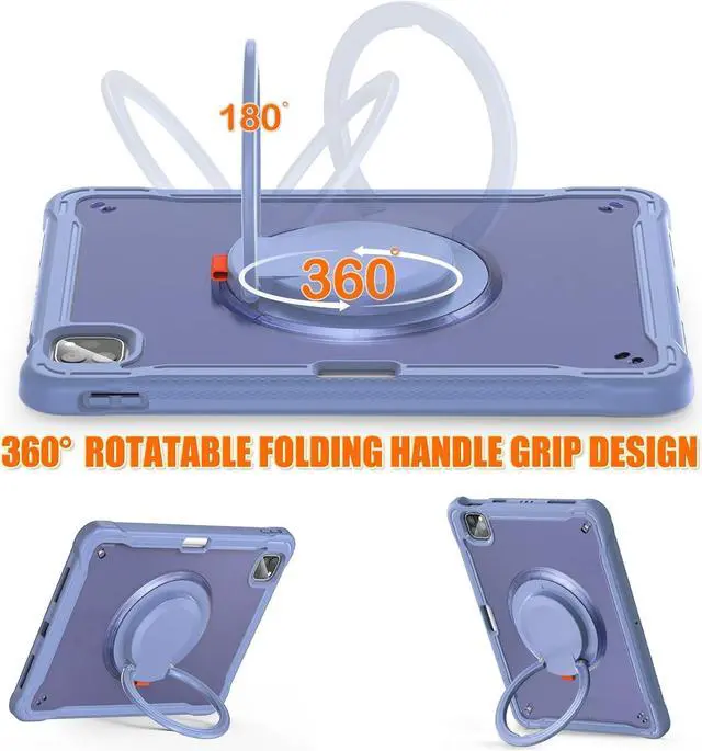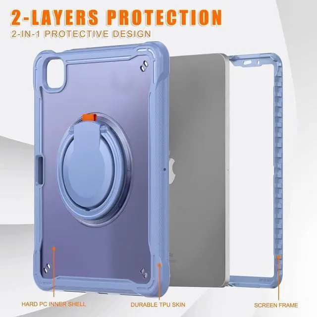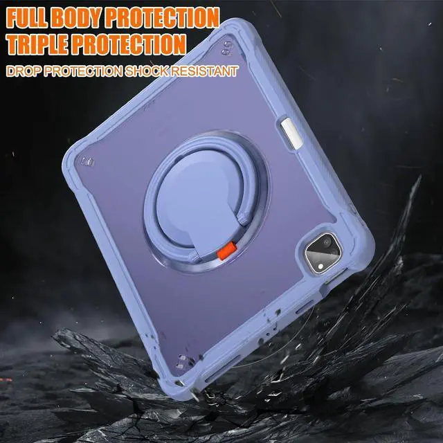 iPad Pro 11 inch Case 2024 M4 Chip Lightweight Dual-Layer Protective Tablet Cover, Durable Shock-Absorbing Corners with 360° Rotating Kickstand Ring Built-in Pen Slot,Lavender Grey