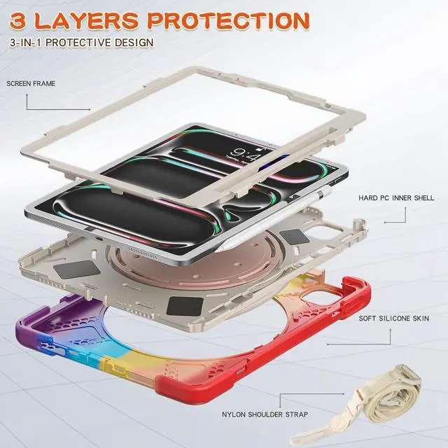 Heavy-Duty Multi-Layer Protection: The iPad Pro protective case boasts a heavy-duty multi-layer design, offering superior protection against impacts, drops, and shocks, ensuring your iPad Pro remains safe and intact.