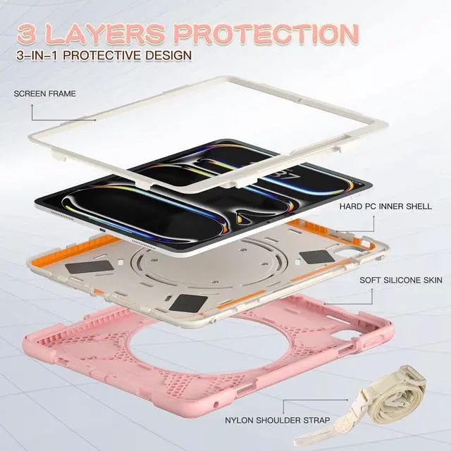 Heavy-Duty Multi-Layer Protection: The iPad Pro protective case boasts a heavy-duty multi-layer design, offering superior protection against impacts, drops, and shocks, ensuring your iPad Pro remains safe and intact.