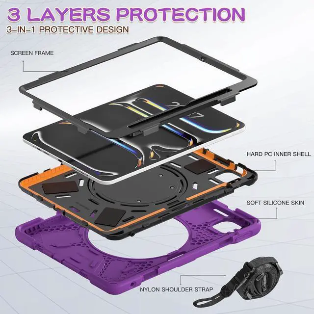 Heavy-duty Multi-layer Protection: The iPad Pro protective case features a heavy-duty multi-layer design, providing robust protection against drops, impacts, and scratches, ensuring the safety of your device.