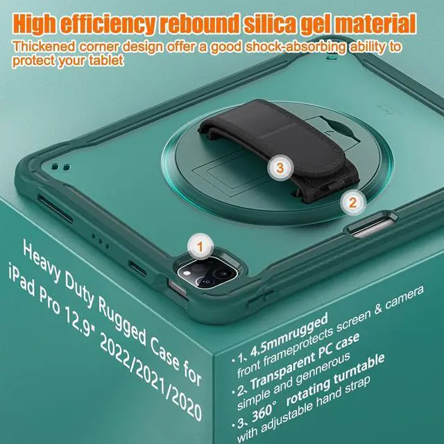 Exclusively designed Shockproof Case for New iPad Pro 12.9-inch 2022 6th with M2 Chip (Model:A2764/A2437/A2766) and 2021 5th Generation (Model Number: A2378/A2379/A2461/A2462) and iPad Pro 12.9-inch 2020 4th Generation (Model Number: A2229/A2069/A2232/A2233).NOT fits other Generations iPad.