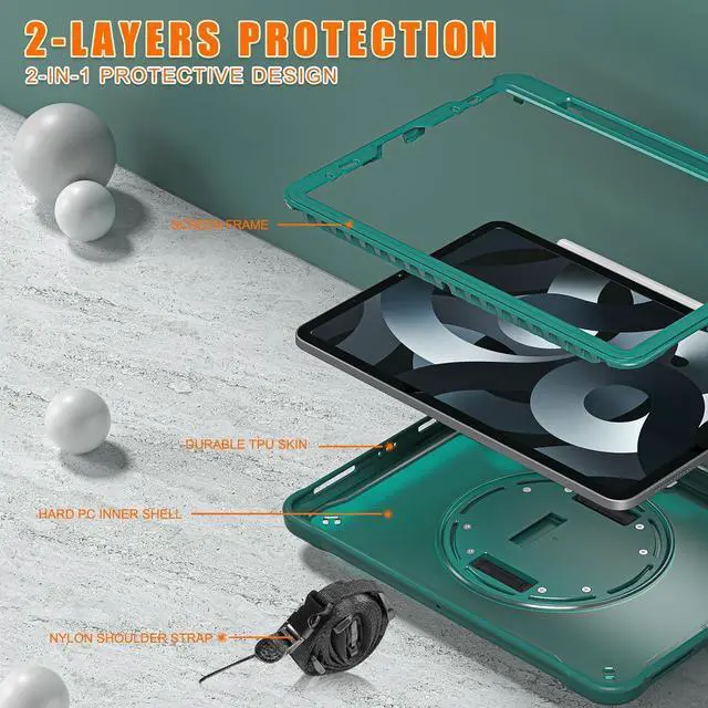 Comprehensive 2-IN-1 Protection: The iPad case offers a dual-layered defense with integrated anti-drop protection and complete 360° coverage, ensuring full security for your iPad.