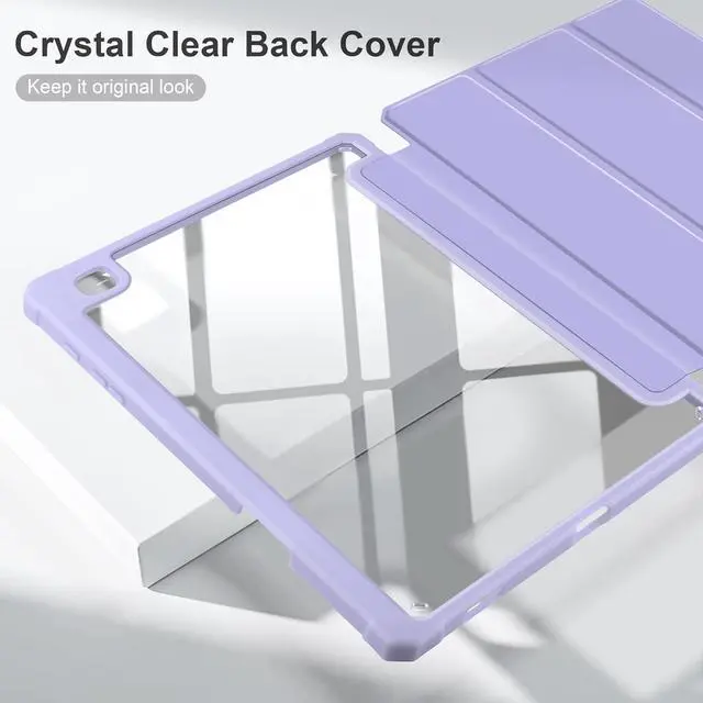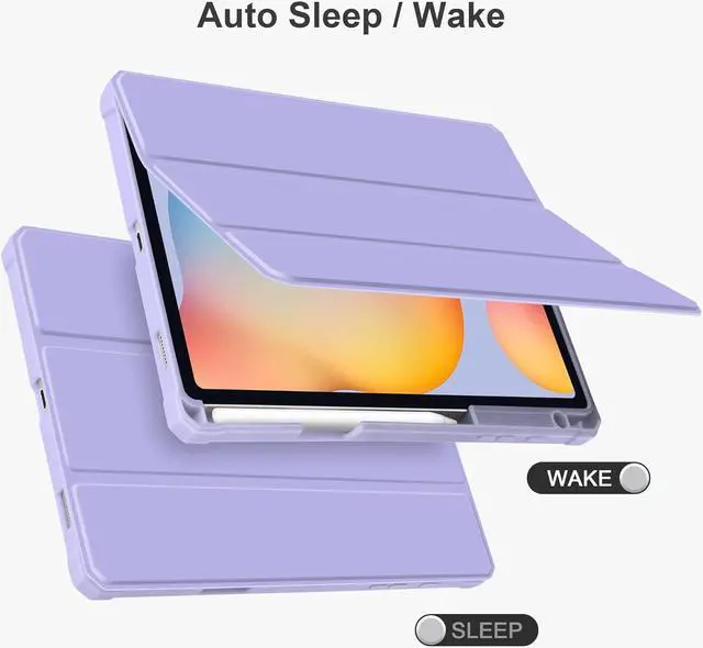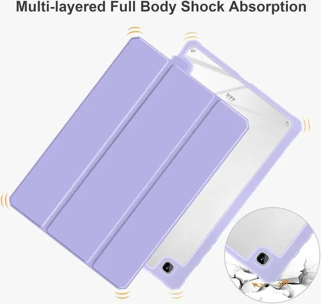 Hybrid Case for Galaxy Tab S6 Lite 10.4 inch 2022/2020 Model (SM-P610/P613/P615/P619) with S Pen Holder Shockproof Cover with Clear Back Shell TPU Bumper Auto Sleep/Wake, Purple