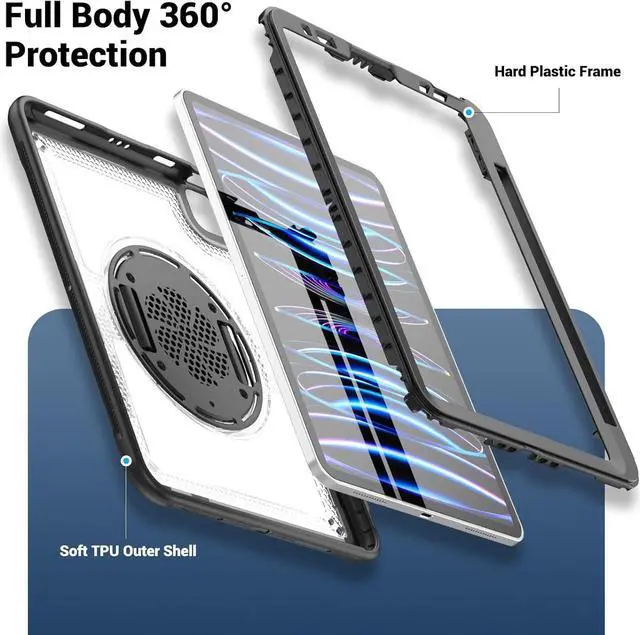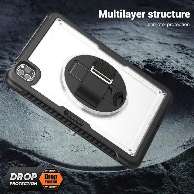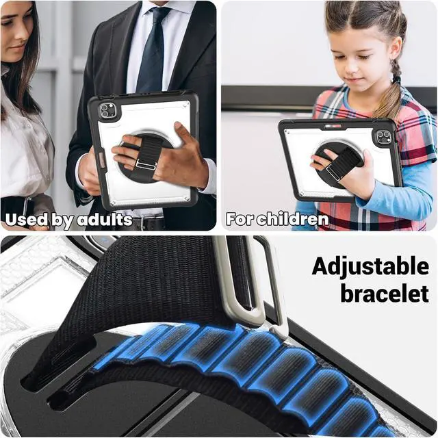 360° Rotating Hand Strap: The 360° rotating hand strap design offers secure and flexible handling options, allowing you to comfortably carry your iPad in any orientation, making it perfect for mobile professionals and students.