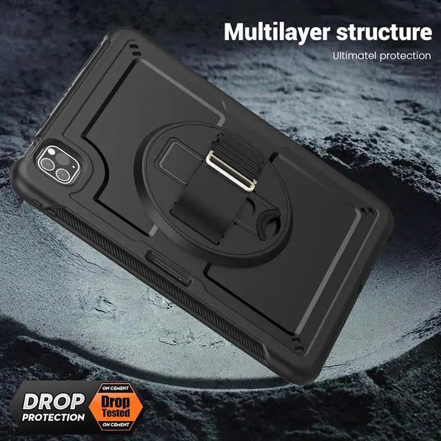 360° Rotating Hand Strap: The 360° rotating hand strap design offers secure and flexible handling options, allowing you to comfortably carry your iPad in any orientation, making it perfect for mobile professionals and students.