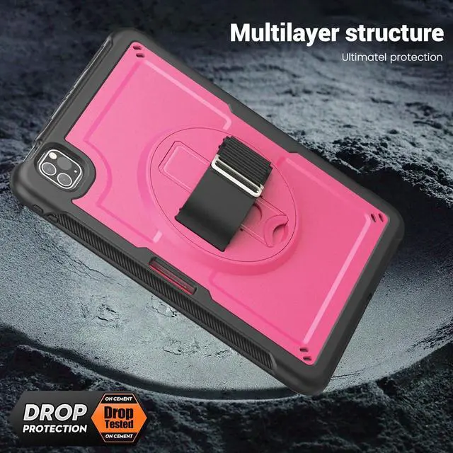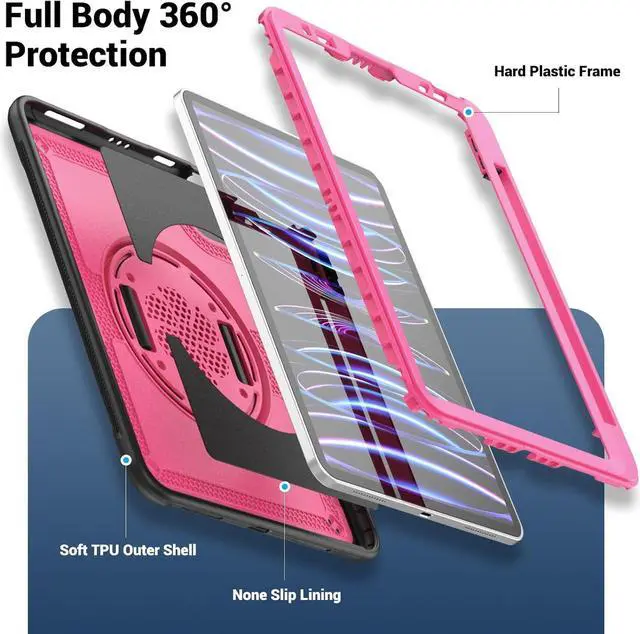 360° Rotating Hand Strap: The 360° rotating hand strap design offers secure and flexible handling options, allowing you to comfortably carry your iPad in any orientation, making it perfect for mobile professionals and students.