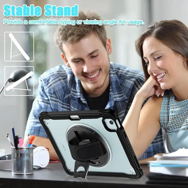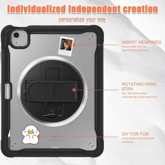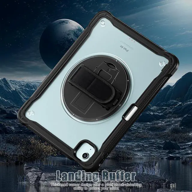 360° Rotating Hand Strap Design: With a 360° rotating hand strap design, this case offers versatile handling options, allowing you to comfortably carry your iPad Air in any orientation, making it ideal for on-the-go use.