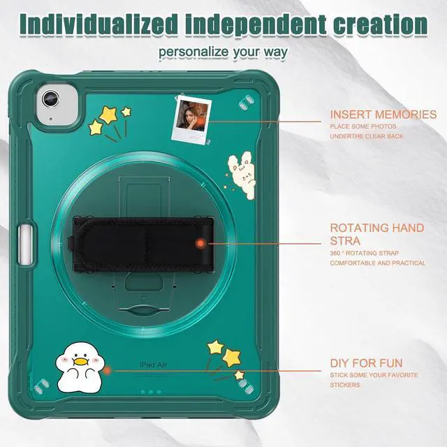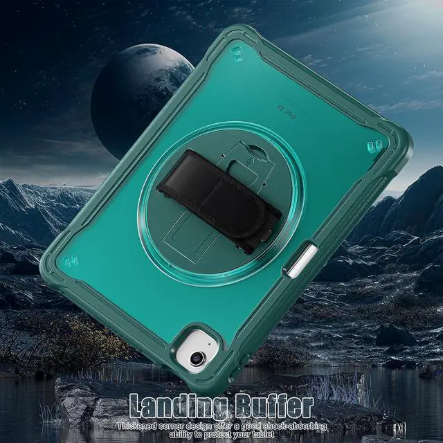 360° Rotating Hand Strap Design: With a 360° rotating hand strap design, this case offers versatile handling options, allowing you to comfortably carry your iPad Air in any orientation, making it ideal for on-the-go use.