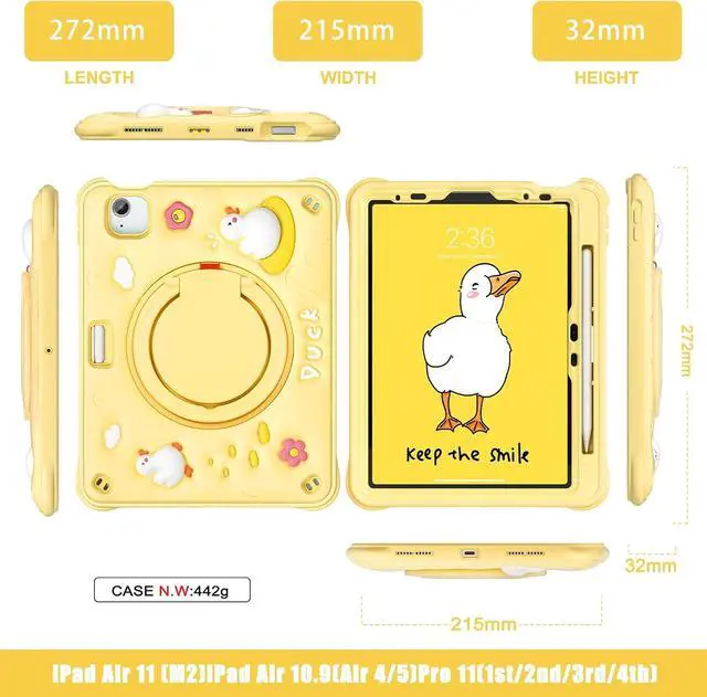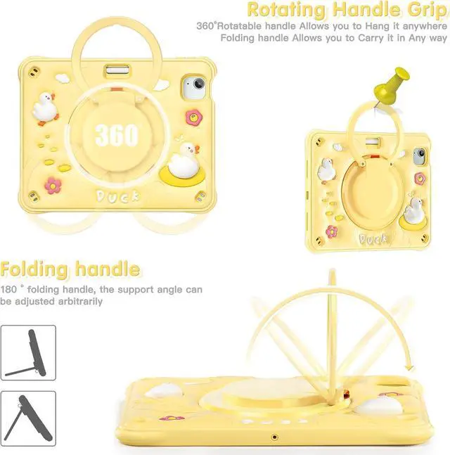 360° Rotating Retractable Kickstand Ring: The bottom-mounted kickstand ring offers adjustable viewing angles, perfect for learning or entertainment. It conveniently folds away when not in use